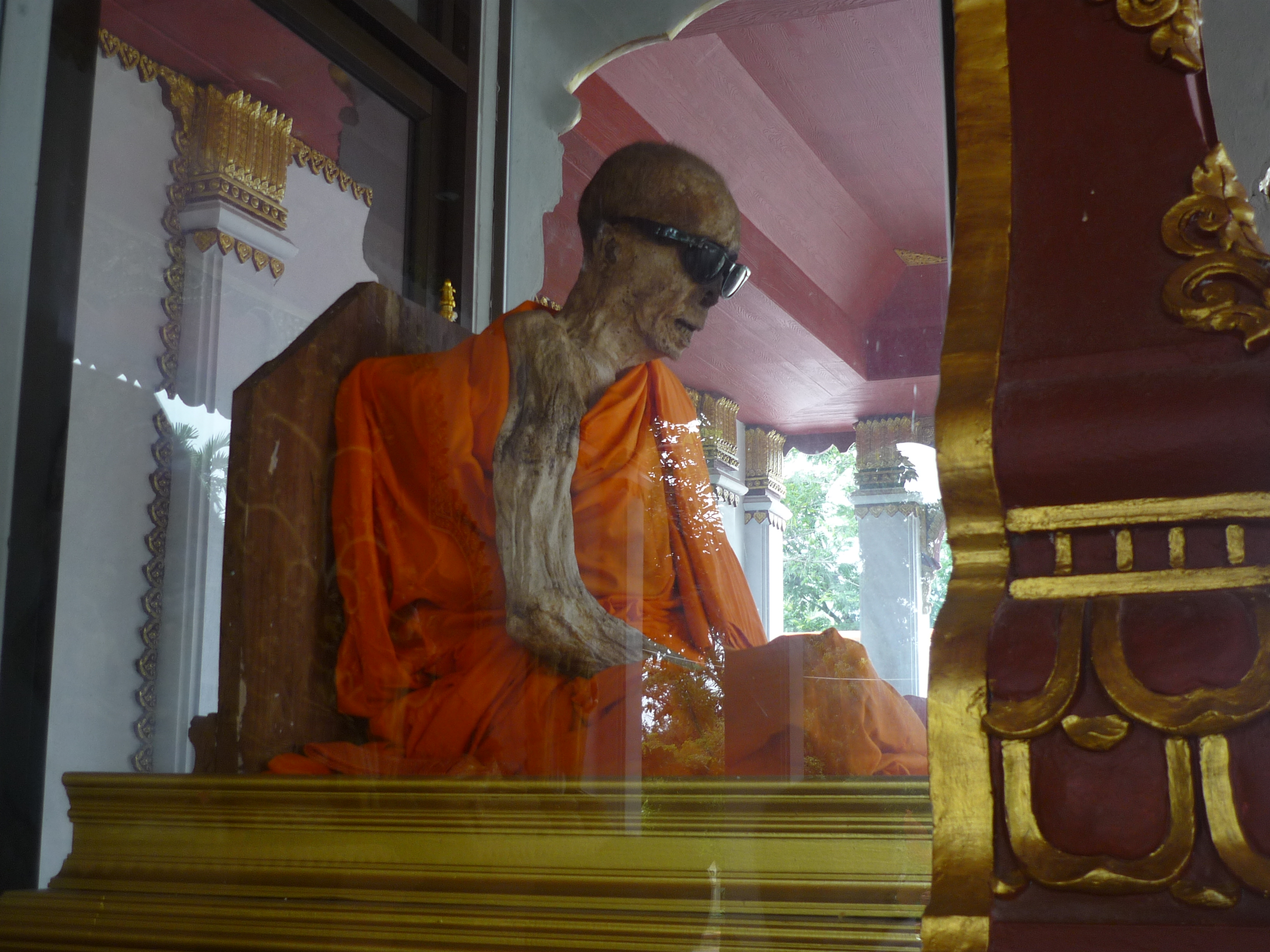 Burayı gezmeyi tamamladıktan sonra, adadaki her broşür ve kitapcıkta resmedilen “Mumya Rahip – Mummified Monk” u ziyarete koyulduk. Bu rahip adanın en meşhur, en mistik kişisiymiş. Yıllar önce kendisini uzunca bir meditasyon sürecine almış ve yine meditasyon sırasında şu anda oturduğu pozisyondayken ölmüş. Ada yerlileri de onu bu şekilde mumyalamışlar ve turistlere seyrettiriyorlar.