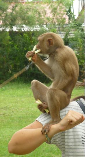 Hayvanlarla iyi anlaştığımızı gören rehberimiz bizi buradan nefes bile aldırmadan son durağımız olan Maymun show’una götürdü. Gittiğimiz bölgenin ismi malesef aklımda değili ama bolca hindistan ağacının bulunduğu bir bölgeydi. Önce bir maymun ağaca tırmanarak hindistan cevizi topladı, ardından bir amca bizi hindistan cevizlerinin etinden sütünden yararlandırdı ( enfes bir tadı vardı! ), en son minik kahramanımızla fotoğraf çektirip bu bölgeden ayrıldık ve rehberimiz biraz dinlenebilmemiz için hızlıca otelimize bırakarak bize veda etti.