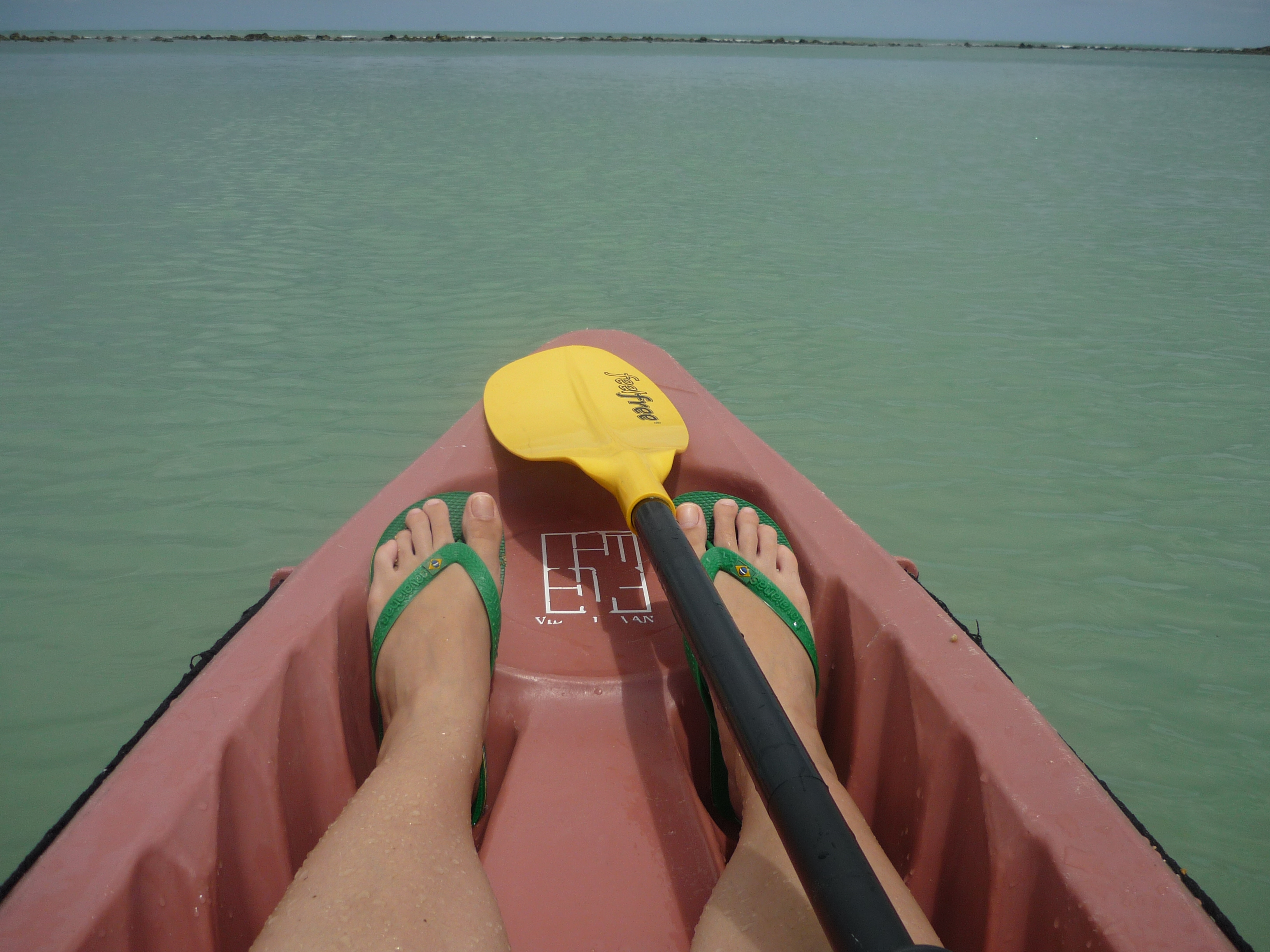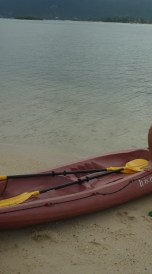 Önce diğer tesislerin önünden kumsalda uzunca yürüyüp çevreyle her türlü oyunu oynadıktan sonra gözümüzü otelimizin önünde duran başı boş kanoya diktik, ve neden karşı adaya gitmiyoruzki?! diye düşünürken kendimizi sulara attık:)
