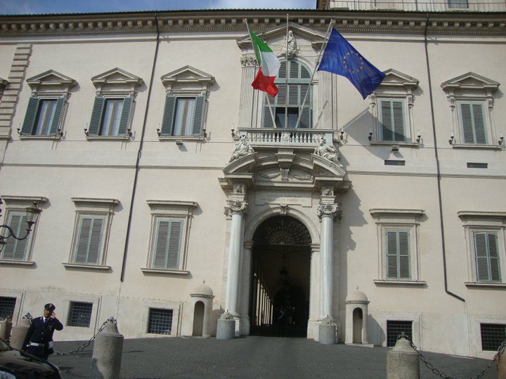 Eşyaları bırakıp saat 16:00 civarı kendimizi otelimizin bulunduğu Via Nazionale Caddesinden Roma’nın hareketli sokaklarına attık. Ellerimizde haritalar, bi taraftan telefonların map’lerini açıp başladık sokakları arşınlamaya, Mayıs ayında gitmemizin en büyük faydası havanın geç kararıyor olmasıydı. İlk günümüz dolu dolu geçirebilecektik, bu nedenle daha önceden yaptığımız plana göre ilk istikametimiz Aşk Çeşmesi yani “Fontana Di Trevi” oldu. Buraya doğru yol alırken, geçtiğimiz sokaklar hiç aklımızda olmayan yerleri de keşfetmemize yardımcı oldu. Karşımıza çıkan ilk merak uyandıran yer, Roma’daki Cumhurbaşkanlığı Sarayı ve önündeki küçük meydan oldu.