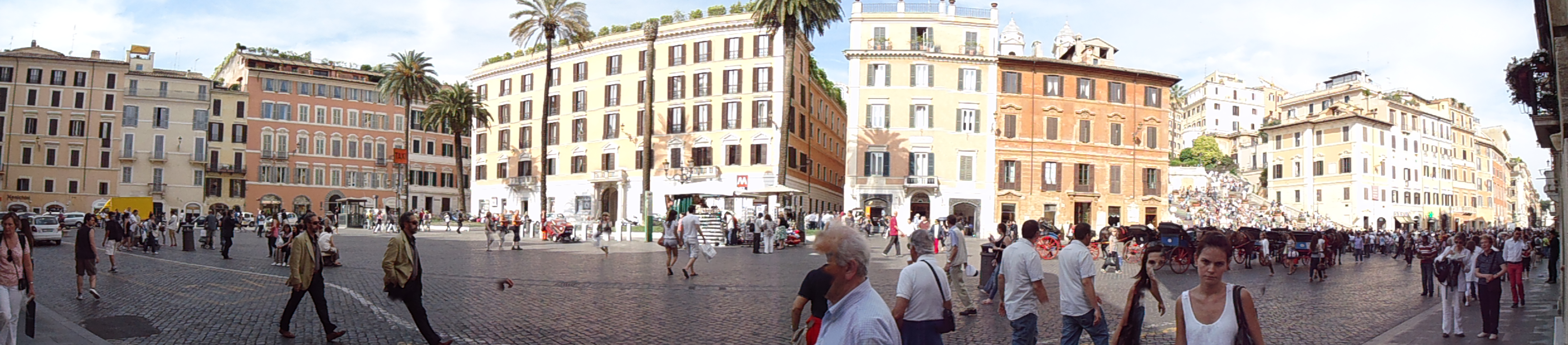 Aslında mantıkta sokak olan ancak üstü tamamen camla kapatılmış ve bu haliyle adeta kafesi andıran bir çarşıya girmiştik. İçinde bir çok küçük butik ve mağaza olan bu çarşıyı hızlıca gezip geçip, yine klasik dar bir sokak boyunca ilerleyip muhteşem kalabalığıyla Spagna Meydanı yani “Piazza Di Spagna” ve önündeki meşhur İspanyol Merdivenleri tam şarşımızda duruyordu.