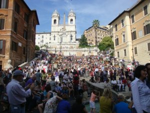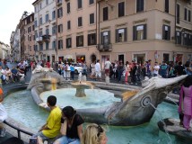Burda hem biraz dinlenmek hem merdivenlerin hareket ve canlılığının tadını çıkarmak ve birkaç fotoğraf çekmek için basamaklarda kendimize genişçe bir yer bulduk ve biraz yayıldık:) Meydanda at arabasıyla etrafı gezmekve çok sayıda çiçek satıcısıyla karşılaşmak mümkün. Bu sevimli arkadaşların size yapışması da çok mümkün, çantalarınıza dikkat etmeniz konusunda uyarı yapmama gerek yok sanırım, İtalya, özellikle de Roma Avrupa’da en çok hırsızı barındıran bölge! Aman Dikkat diyip, yola devam ediyoruz:)