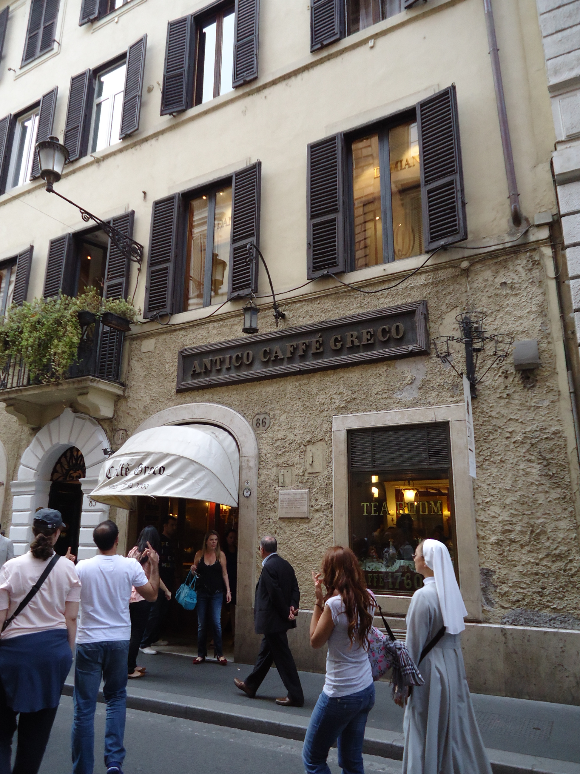 Oldukça lezzetli olduğunu söyleyebileceğim ilk pizza deneyimimizin ardından yavaş yavaş, salına salına geldiğimiz sokakların paralelinden farklı yerleri keşfederek otelimize geri dönmeye karar verdik, ama önce Via Condotti’nin Spagna meydanın açılan ağzına çok yakın “Antico Cafe Greco” Roma’nın en iyi tramisusunu yapıyormuş dediler, tabiki de gittik 🙂 Ama mutfakları tadilata alındığı için deneyemedik!