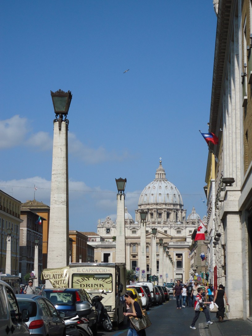 Bu arada Vatikan ve çevresine giderken kısa şort veya kısa kollu tshirt giymek pek makul karşılanmıyor bu nedenle özellikle de St. Pietro’s Basilicası’na (Manastır – Kilise) giriş yapacaksanız zaten kilise yetkililerince sert bir şekilde uyarılıyorsunuz.
