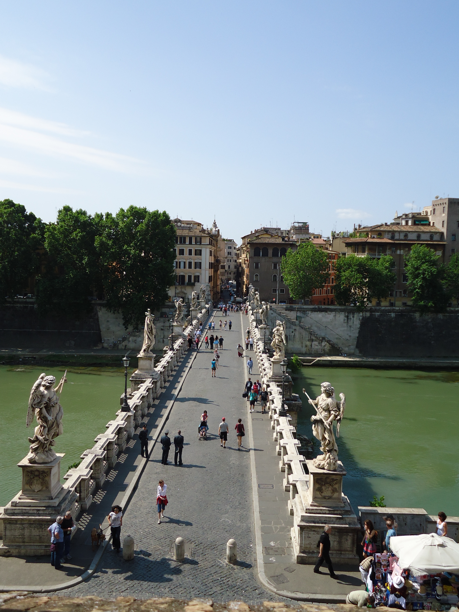 Kalenin tam önündeki Ponte Sant’Angelo köprüsü yer alıyor. Bu Melekler ve Şeytanlar kitap ve filminde de yer alan melek heykelleriyle ünlü tarihi köprü. Köprünün her iki yanında da benzer tarihi nitelikte köprüler uzanmaya devam ediyor. Kaleden köprüleri, köprüden de kaleleri izlemek gerçekten oldukça keyifli, bu bölgede bol bol resim çekebileceğinizi de söylememe gerek yok sanırım.