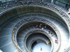 Müzenin çıkış merdivenleri de en az müze kadar ilgi çekici, burda da farketmeden bir 10 dakika kadar vakit geçirip, hediyelik eşya standlarına da tek tek uğrayıp, geldğimiz yoldan S. Pietro’s Basilicası’na geri döndük.