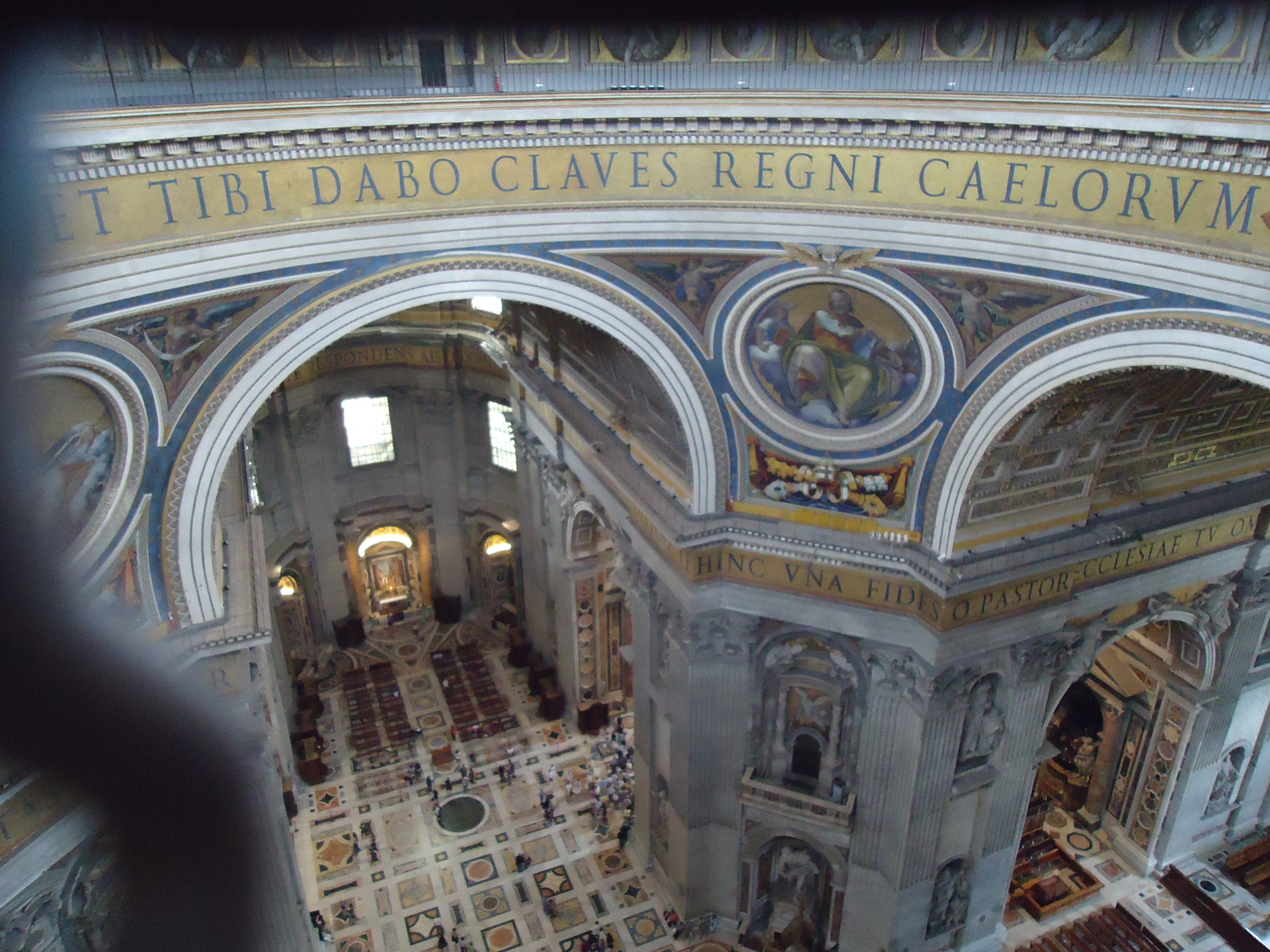 Meydana geldiğimizde bizi önce koca kubbe (“cupola”, papa seçildiğinde üstünden beyaz duman tüttürdükleri) ve azizlerin heykelleri karşıladı. İçeri giriş sırası biraz çok olabilir ama neyseki bir çok giriş hattı var ve yaklaşık 15-20 dakikada sıramız geldi. Önce St.Pietro’s Manastırı içine giriyorsunuz, burası muazzam şaşalı bir manastır ve oldukça etkileyici. Burdan Basilica’ya geçiş mevcut, eski Papa’ların kıyafetleri, taçları, vs..burda sergileniyor. Burdan çıkınca “Tombs of the Saints” kısmına girip St.Pietro’dan beri gelmiş geçmiş tüm papaların mezarlarının bulunduğu kısmı gezilebiliyor. Biz buraları çok detaylı gezmedik ama ilginize göre 1 saat kadar zaman harcayabilirsiniz. Esas heycan verici yere ise yine dizaynı Michelangelo tarafından yapılmış Cupola (Kubbe). Buraya çıkmak için 2 yol var.