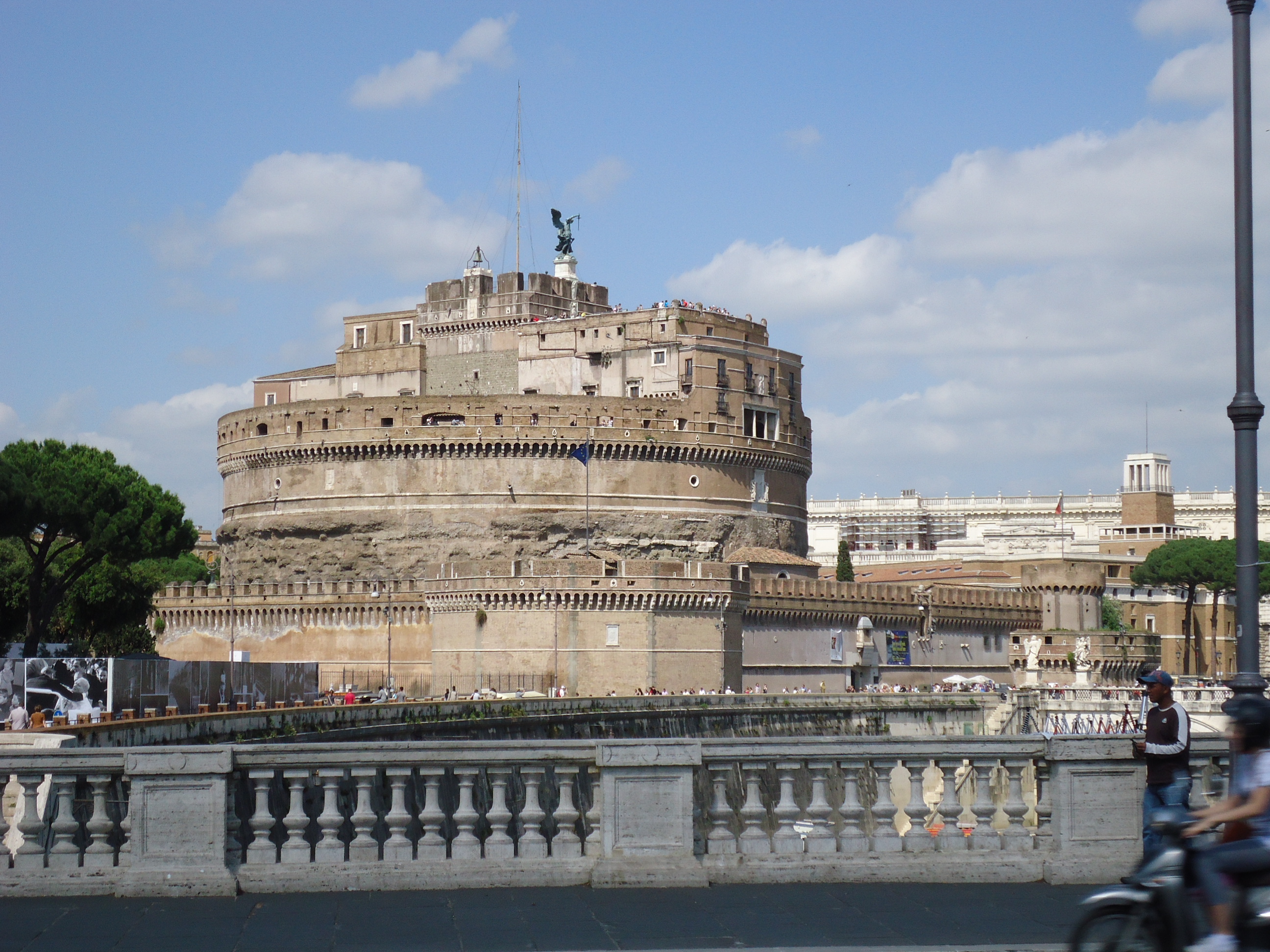 Roma İmparatorluğu döneminde yapılmış daha sonra uzun yıllar kale ve bir süre de hapishane olarak kullanılmış. Kalenin tepesine bir melek indiği rivayetlerinden sonra, adı Castel Sant’Angelo olarak değiştirilmiş. Kalenin içinde ve teraslarında halen çalışır durumda bulunan toplar duruyor. Bunun nedeni ise olası bir savaş çıkması durumunda Papa ‘nın buraya kaçırılıp korunması gerekliliğiymiş.. Avrupa’nın göbeğinde 21.yy’da savaş çıkar da hala top tüfek kullanılır mı emin olamadık tabi! Kalenin en yüksek terasındaki Roma manzarası ise görmeye değer, kaleyi gezmenizi tavsiye derim.