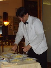 Akşam programımızda aylar öncesinden yer ayırttımız dünyaca ünlü Alfredo lokantası vardı. Doğum yaptıktan sonra sağlığı bozulup iştahı kesilen eşini; elleriyle yaptığı ve sonra adını alacak tadına doyulmaz fettuccine’si ile iyileştiren Sinyor Alfredo’nun 1908 senesinde Roma’da açtığı efsaneleşmiş lokantası, “L’ORIGINALE ALFREDO” bugüne kadar dünyadan ve Türkiye’den bir çok önemli ve tanınmış simayı ağırlamış.