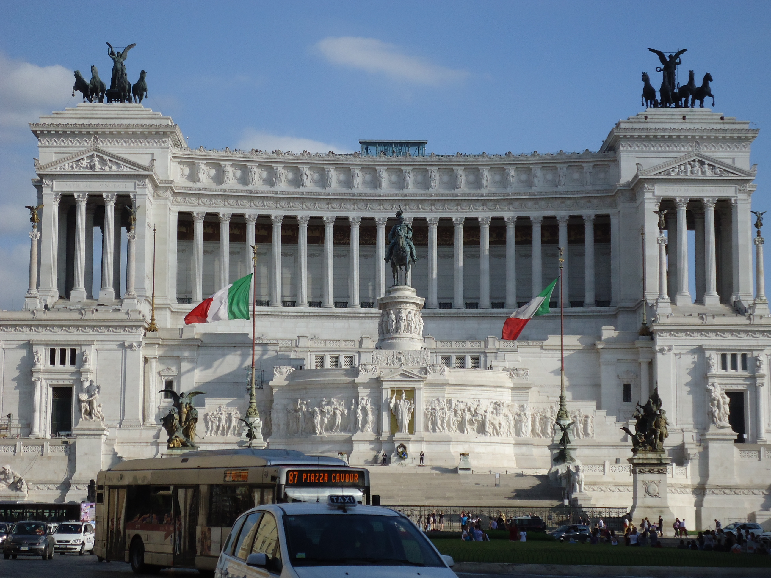Forum’dan ayrılıp önündeki caddeyi takip etmenizin sonucunda Piazza Venezia’ya varacaksınız. Meydanda sizi karşılayan ve tamamı beyaz saf mermerden inşaa edilmiş olan kremalı pasta kıvamındaki anıt, Italya’nın ilk kralı Vittorio Emanuele II ‘e ait. Burada aynı zamanda 1.Dünya Savaşında ölen meçhul 11 askerin mezarı da varmış. Ondan buraya “Unknown Soldier”(Bilinmeyen Asker) da deniyor.