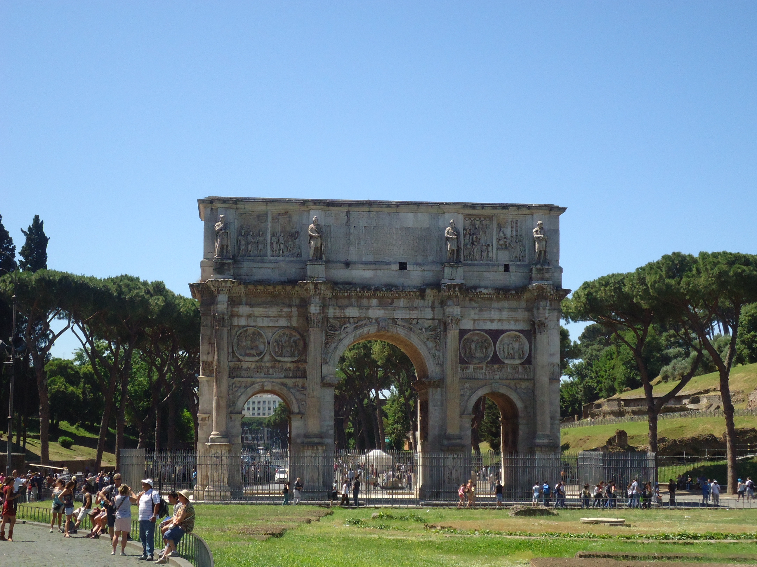Normal şartlarda 1-2 saatinizi burda geçirebilirsiniz. Biz tam bir tur atıp , fotoğraflarımızı çektikten sonra, yapıdan ayrılıp Forum’a ulaşmak için Kolezyum’un hemen önünde, giriş ve çıkılarda net bir şekilde göreceğiniz Konstantin Tak’ını da (Arch of Constantine) fotoğraflayıp, yolumuza devam ettik. Mayıs ayı içinde gitmiş olmamıza rağmen Avrupa standartlarına göre olduka sıcak bir güne denk gelmiştik ( 33-35 C), o nedenle açık alandan oluşan bu yapıları dolaşmak biraz zor olmuştu.