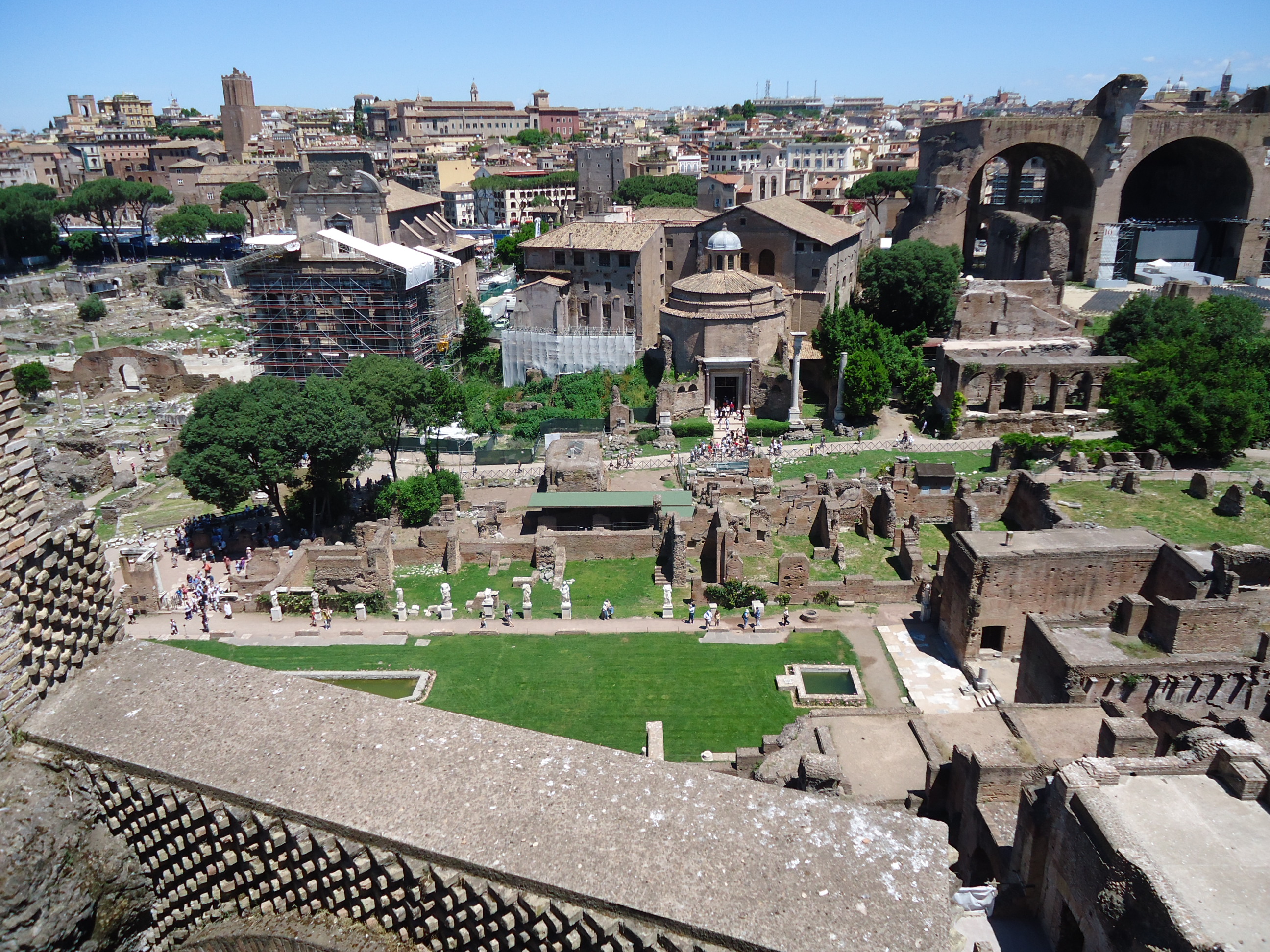 Konstantin Tak’ını geçip antik yolda ilerleyerek Roman Forum’u ve Palatino’ya ulaşabilirsiniz. Palatino’ da devlet binaları, hamamlar ve diğer kalıntıları görmek mümkün. Forumu tepeden seyreden bir konumu var. Buradan ilerleyip Roma Forumu’na geliyorsunuz. Roman Forum’u eski Roma halkının yaşadığı bölgeymiş. Burda da yine heybetli bina ve sütun kalıntılarını görebilirsiniz.
