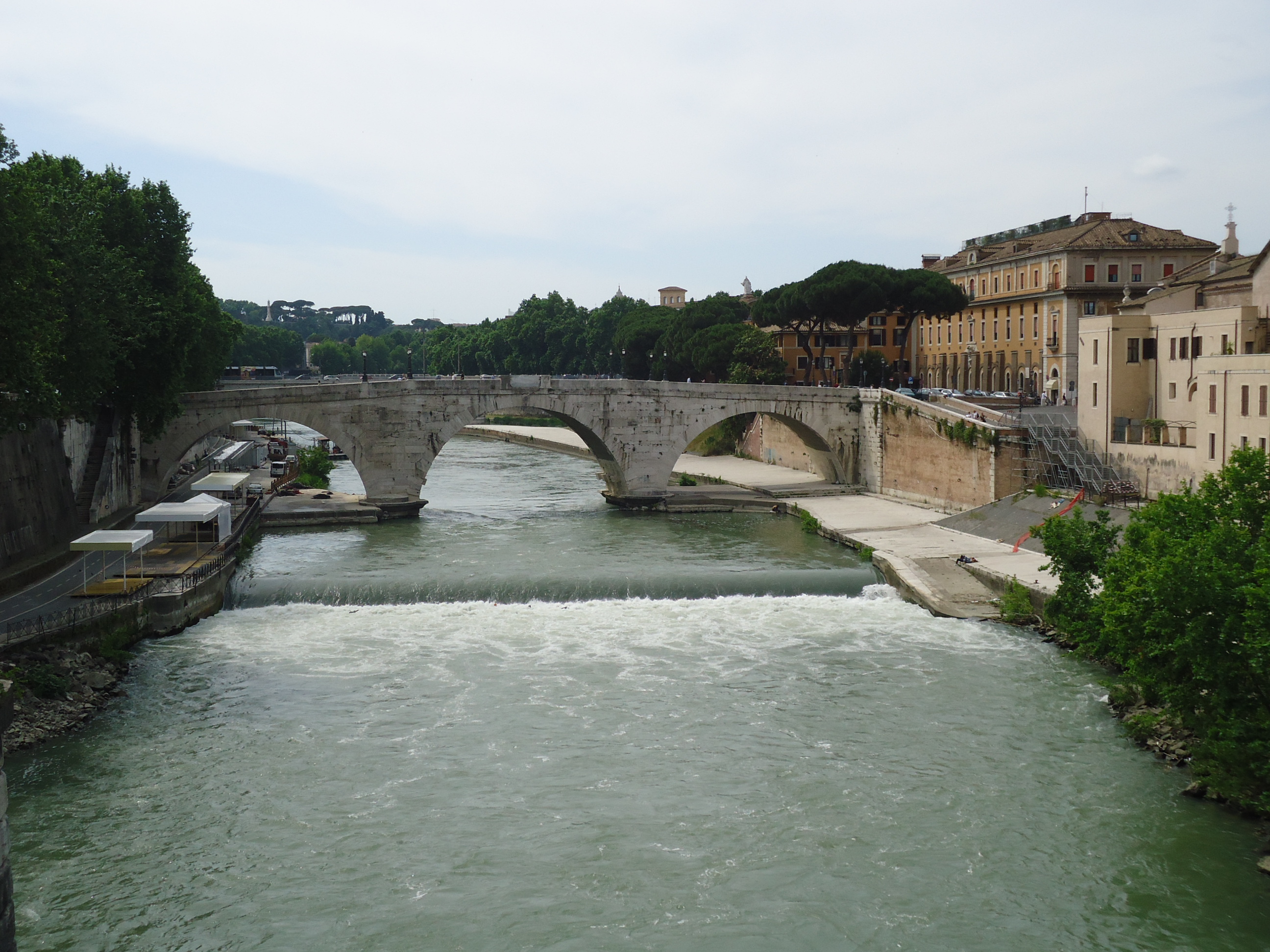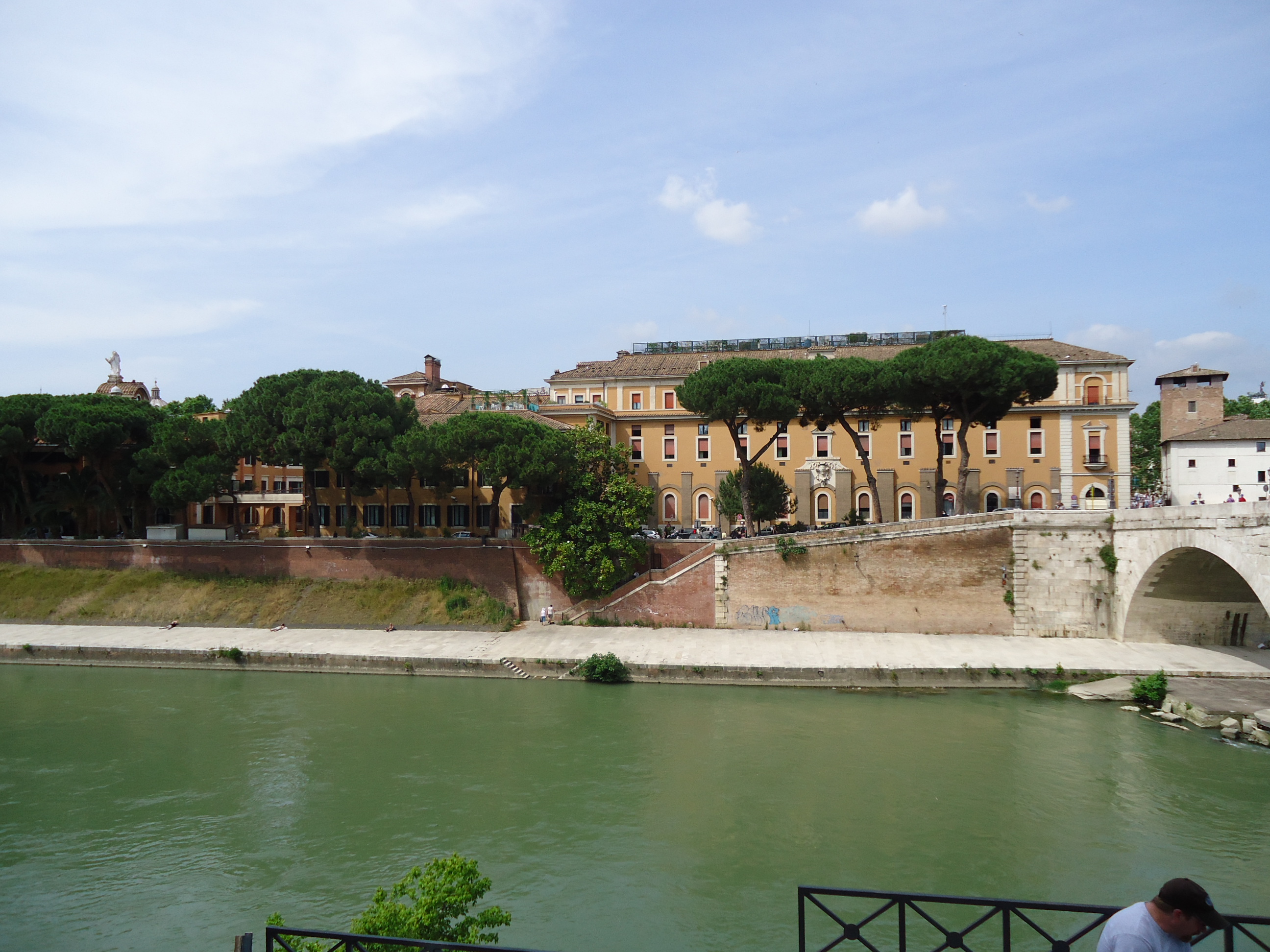 Merkeze göre gündüzleri daha sakin, nehir kıyısında sıralanmış bir çok cafe ve restaurant var, özellikle geceleri buranın ışıklandırılmış halinin muhteşem bir manzara yarattığı söyleniyor. Nehrin kıyısında biraz ilerleyince karşımıza “Isola Tiberina” yani Tiber Adası çıktı. Nehrin ortasında ufak bir adacık ve iki yakaya adayı bağlayan iki tane köprü. Adada üstünde yer alan eski bina bir hastaneymiş buradaki köprü “Ponte Fabricio”, bulunduğumuz yer ile adayı ya Metro ile geldiğimiz bu bölge’ den ilk kez otobüse binerek ayrılıyoruz.