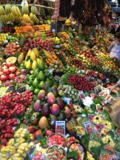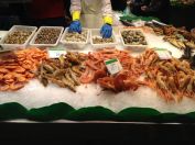 Hızlıca eve dönerken bir kaç gündür önünden geçtiğimiz ama giremediğimiz ünlü Mercat La Boquerıa’ya uğradık. Bu da Madrid’ tekinin birebir benzeri olan bir açık hava pazarı. Rengarenk meyveler, etler, kuru yemişler..Evden kurtulmanın verdiği sevinci burdan meyve alıp yiyerek kutladık:)