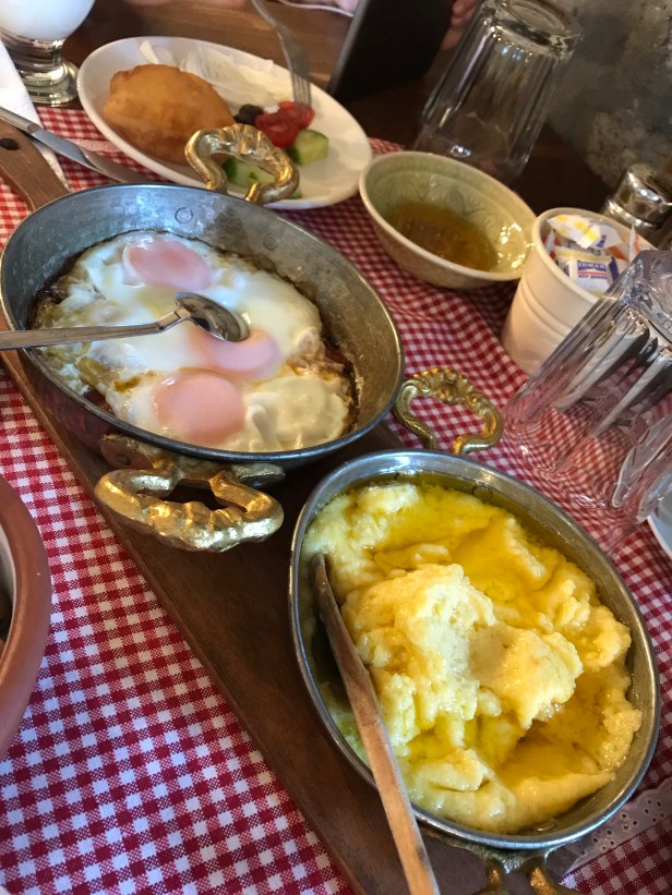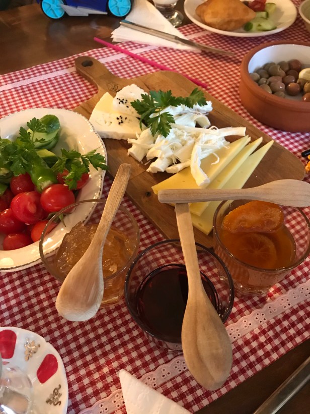 Köy peynirleri, tazecik domates ve yeşillikler, zeytinler, ev yapımı leziz reçeller, beni benden alan mıhlama, sucuklu yumurta…Ev yapımı Limonataları, ve tazecik köy sütü.. Doyası gelmiyor insanın inanın..